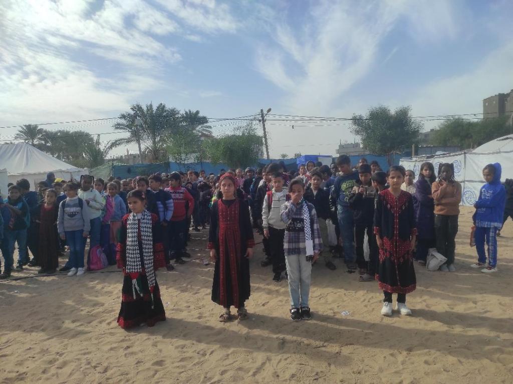 Students show up to the site just south of Gaza City eager to learn but without the basic materials they need – and without proper sanitisation.